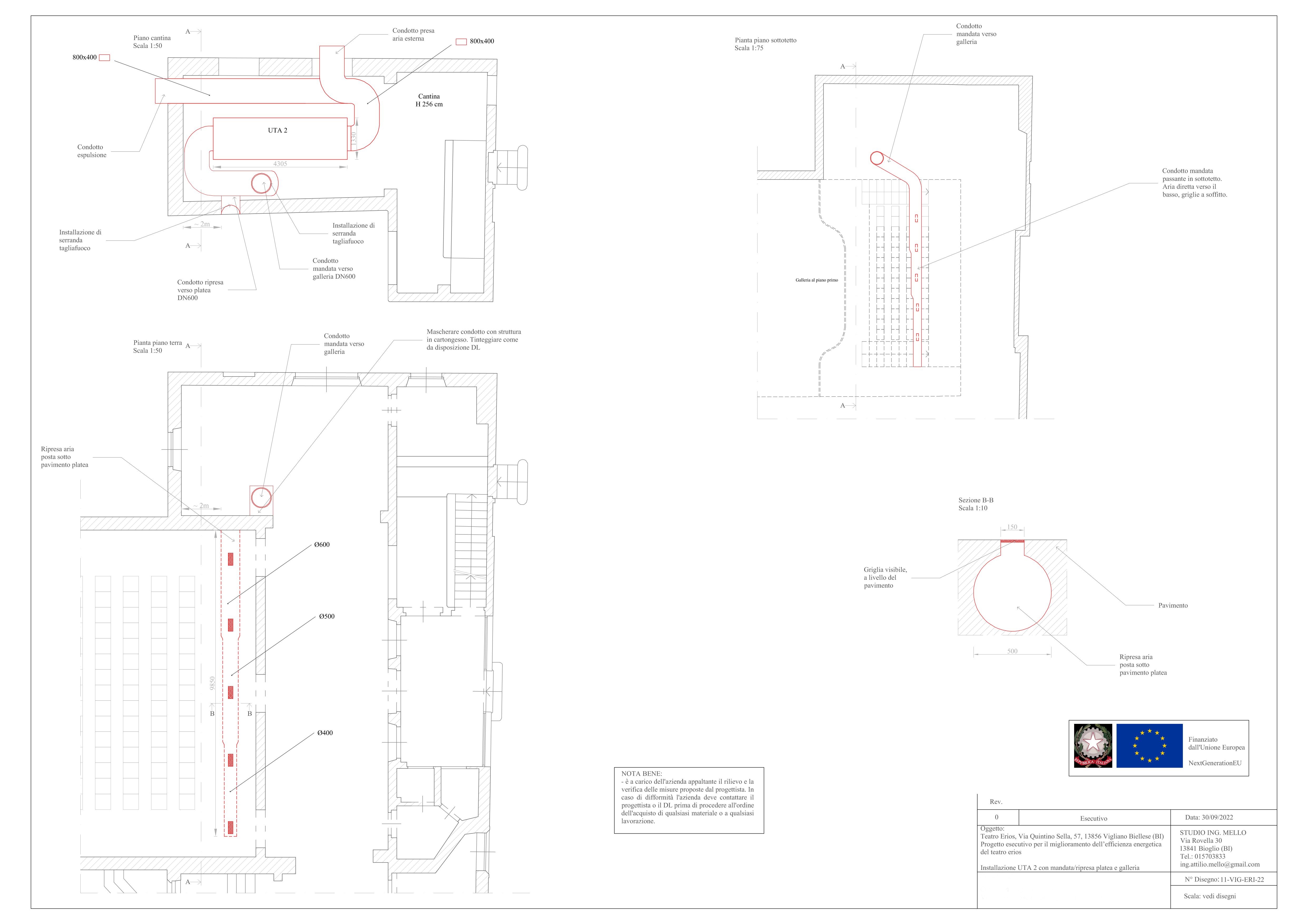 - Nuovo impianto di riscaldamento della volumetria principale (galleria e platea);