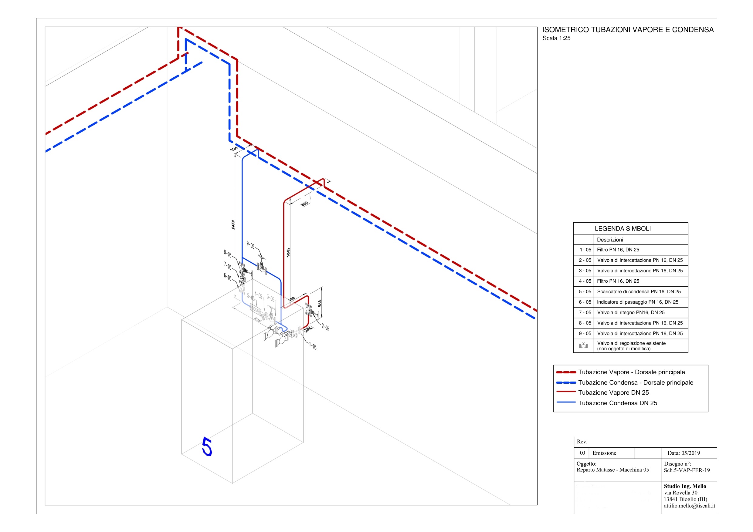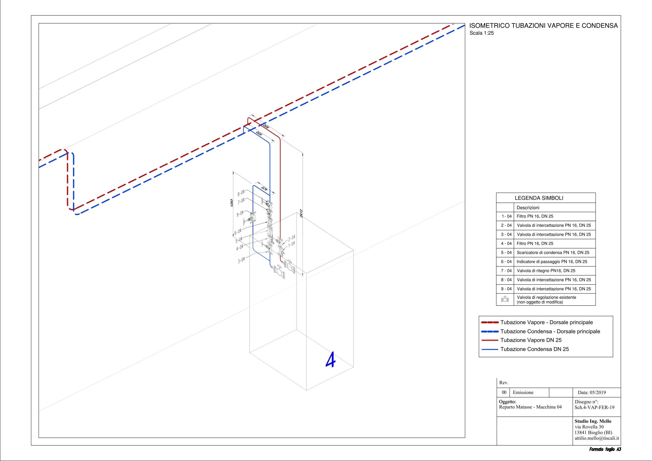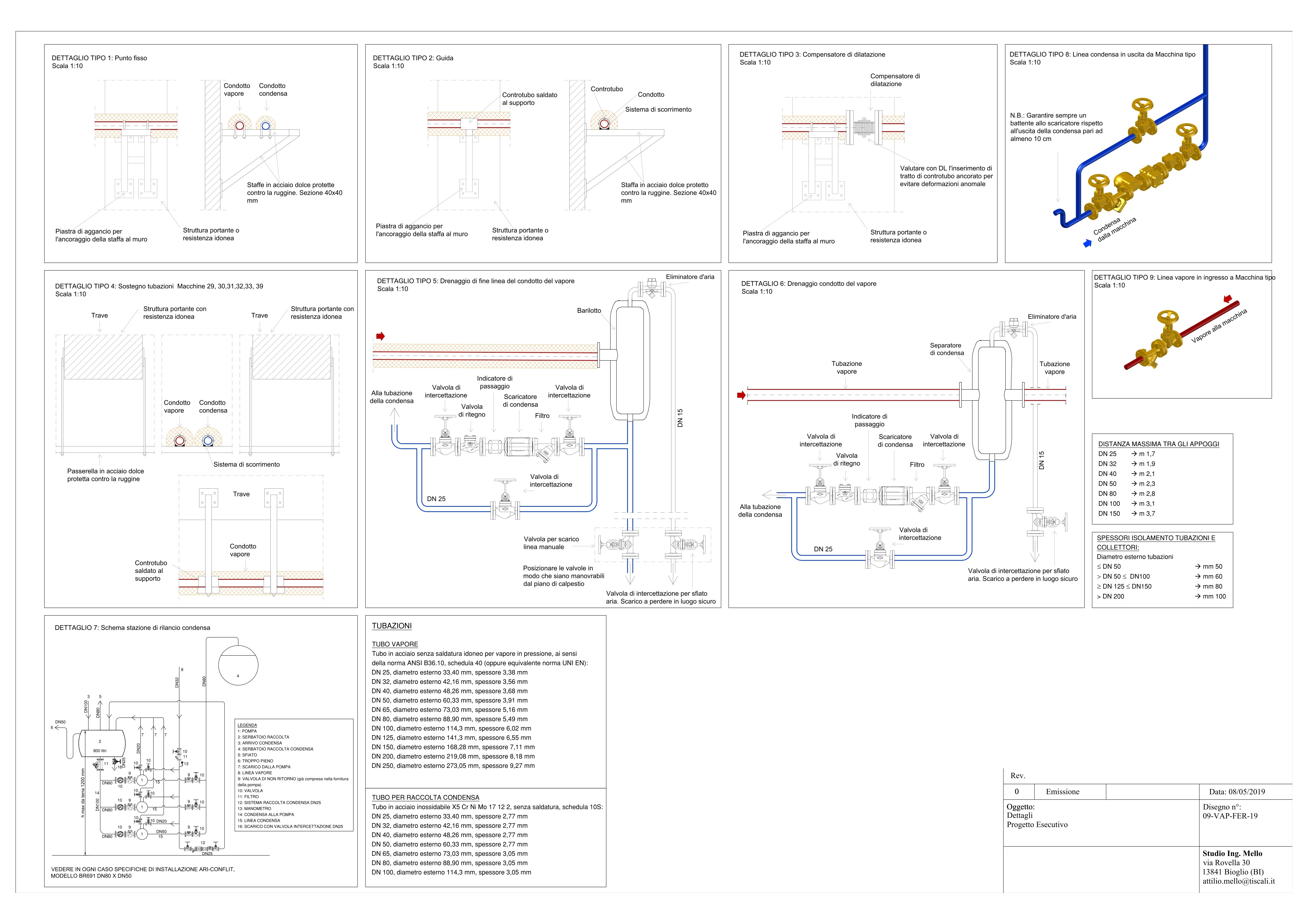 Si noti che vi sono alcuni casi in cui viene richiesto di rilocare la valvola regolatrice del vapore a bordo macchina. Questo è dovuto al fatto che macchine piuttosto datate non contemplavano il concetto di “bordo macchina” e conseguente limite di batteria, certificazione e garanzia dell’apparecchio precisamente individuato. Pertanto la valvola era posizionata dall’idraulico senza “troppi pensieri” dove faceva comodo. Si coglie l’occasione di rivisitare alcune situazioni ed armonizzare i posizionamenti. Gli elaborati di progetto sono molto puntuali.