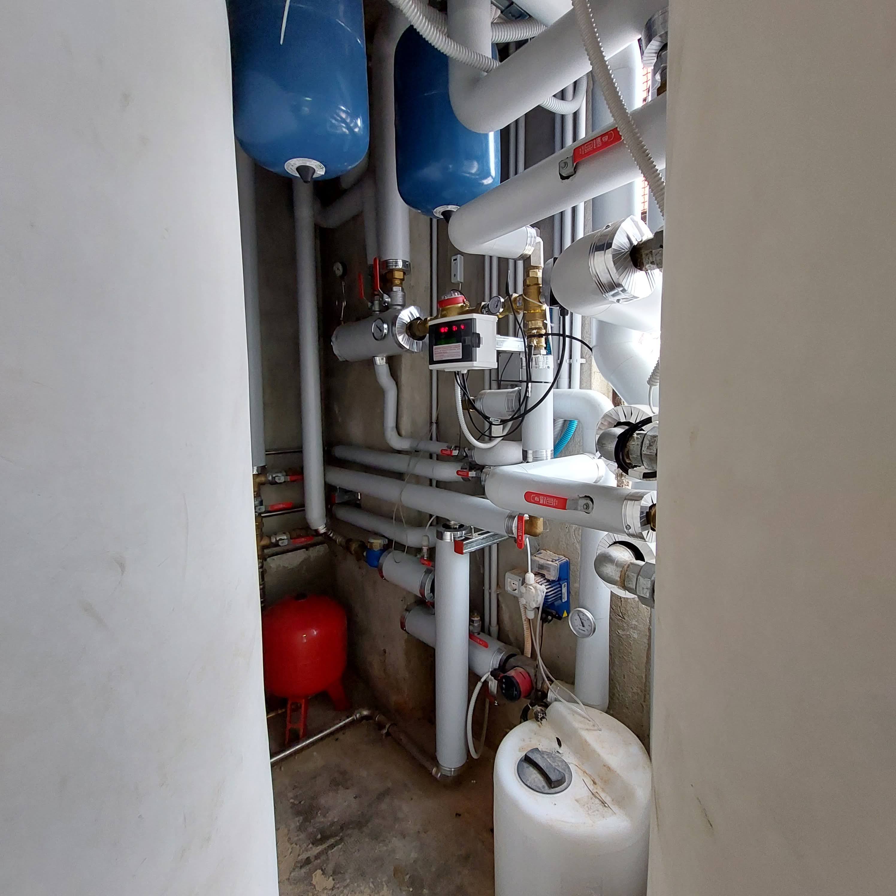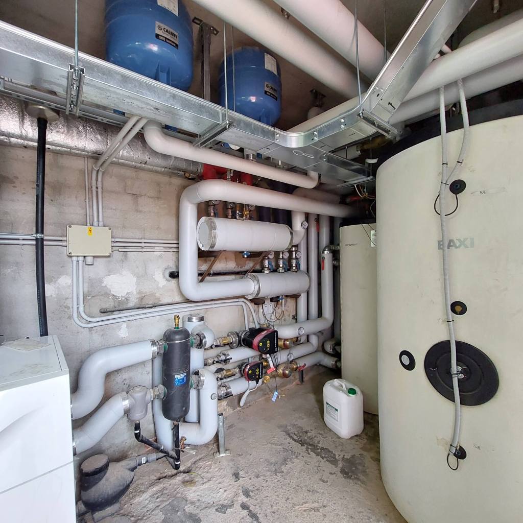 L’attuale generatore di calore è stato completamente eleminato, così come tutti gli organi di regolazione e gestione in centrale termica (CT). E’ stato installato un generatore termico di tipo ibrido composto da una caldaia a gas metano e da una pompa di calore (PdC) condensata in aria alimentata a corrente elettrica. Il SW di regolazione e controllo ottimizza il funzionamento dei due apparecchi in modo da massimizzare il rendimento energetico, con il miglior contributo di energia rinnovabile.